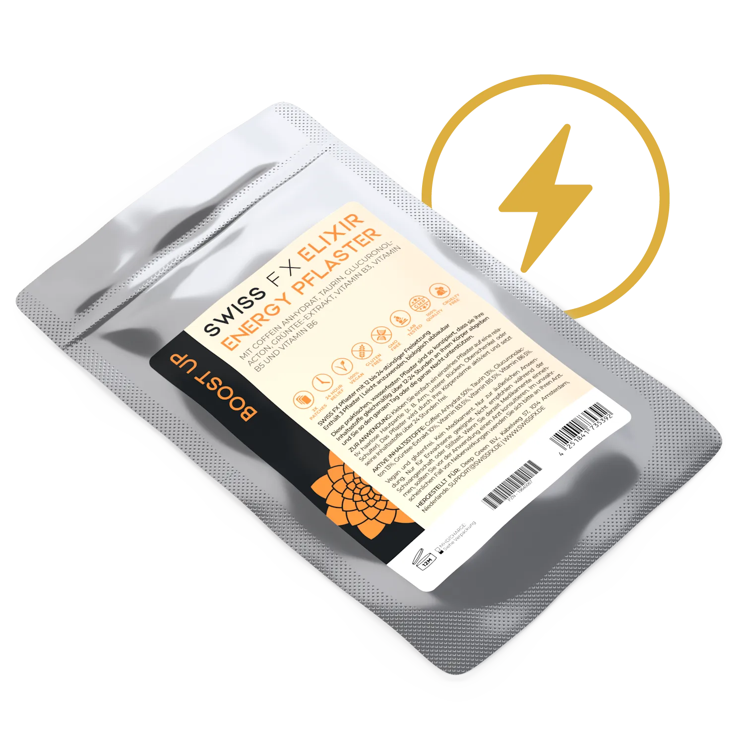 Das Energy Pflaster wird auf eine gut durchblutete Hautstelle, beispielsweise auf den Oberarm, den Nacken oder den unteren Rücken, geklebt. Die Hautstelle sollte trocken und sauber sein, um eine optimale Haftung des Pflasters zu gewährleisten. Das Pflaster ist so gestaltet, dass es unauffällig unter der Kleidung getragen werden kann, sodass es während des Tages kaum spürbar ist. Es ist ideal für die Anwendung im Büro, beim Sport oder bei täglichen Aktivitäten. Das Pflaster wird durch Ihre Körperwärme aktiviert und setzt seine Inhaltsstoffe über 12 Stunden frei.