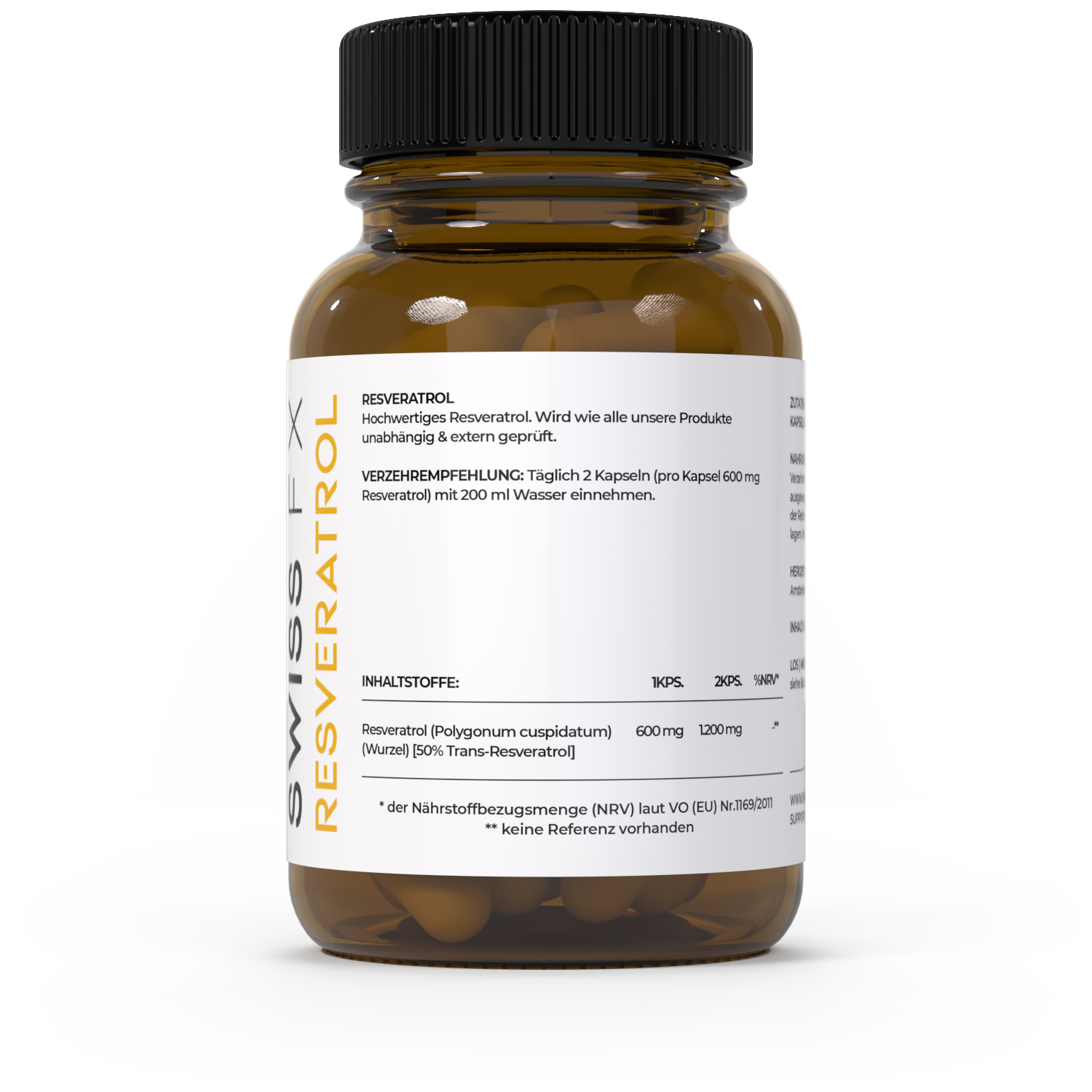 Die SWISS FX Resveratrol Kapseln liefern eine der höchsten Konzentrationen an bioaktivem Trans-Resveratrol, gewonnen aus der japanischen Staudenknöterich-Wurzel (Polygonum cuspidatum). Resveratrol ist ein starkes Antioxidans, das Zellen vor oxidativem Stress schützt und so die natürlichen Alterungsprozesse positiv beeinflussen kann.