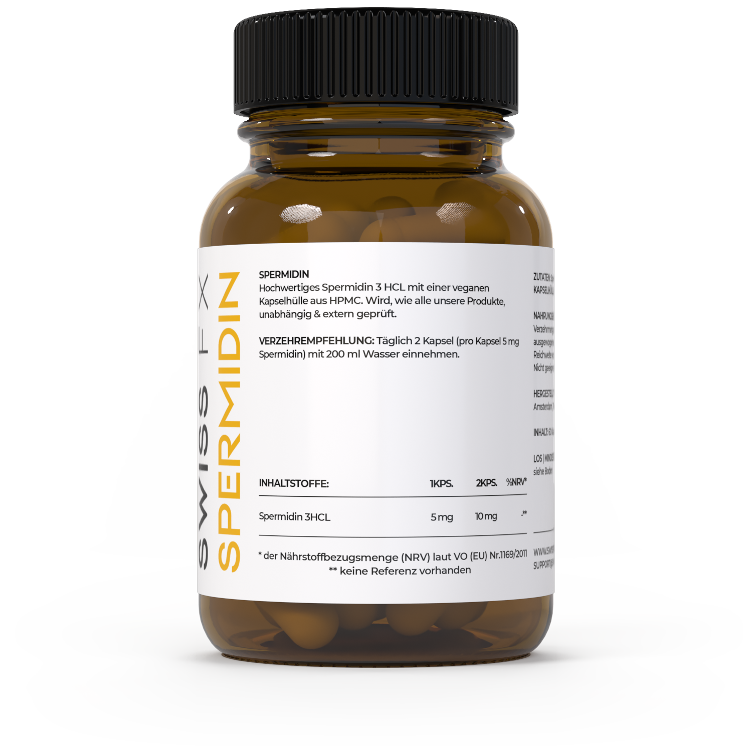 - Hochkonzentriert: 5 mg Spermidin 3 HCL pro Kapsel